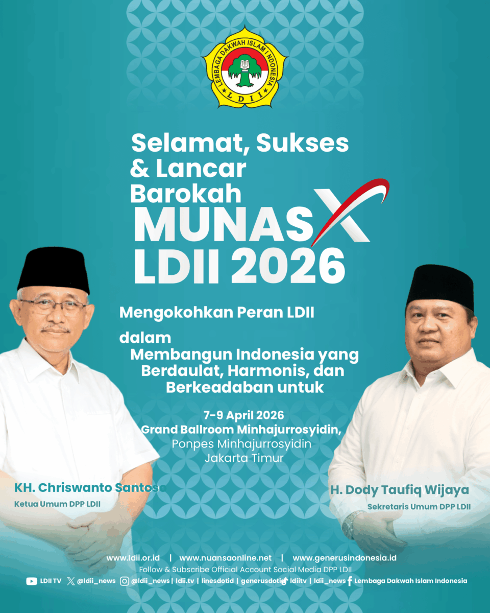 Keluarga Besar Dewan Pimpinan Daerah Lembaga Dakwah Islam Indonesia Kabupaten Banyumas mengucapkan: SELAMAT HARI RAYA IDUL FITRI 1447 H / 2026 M Mohon Maaf Lahir dan Batin Taqobbalallohu Minna Wa Minkum Semoga Allah SWT Menerima Segala Amal Ibadah Kita Ir. H. Taufan Edy Raharjo, M.M. Ketua DPD LDII Kabupaten Banyumas